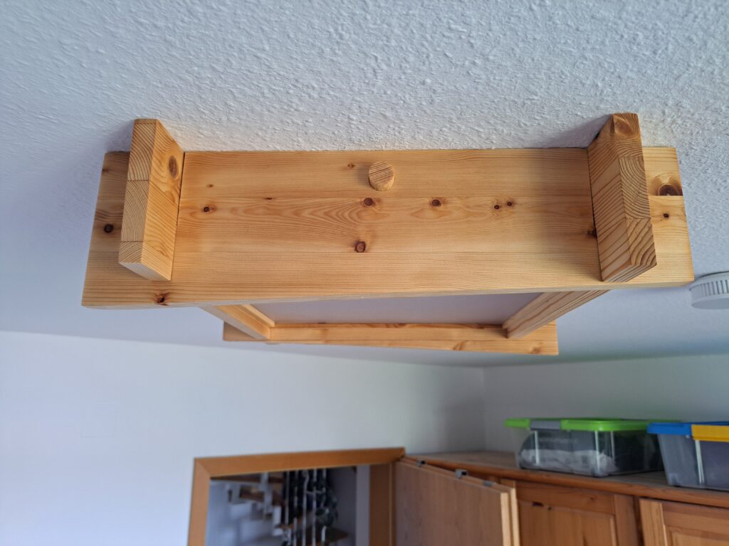Eine einfache Deckenleuchte, bei der die Herausforderung war, ausschließlich Materialien zu benutzen, die ich bereits da hatte.